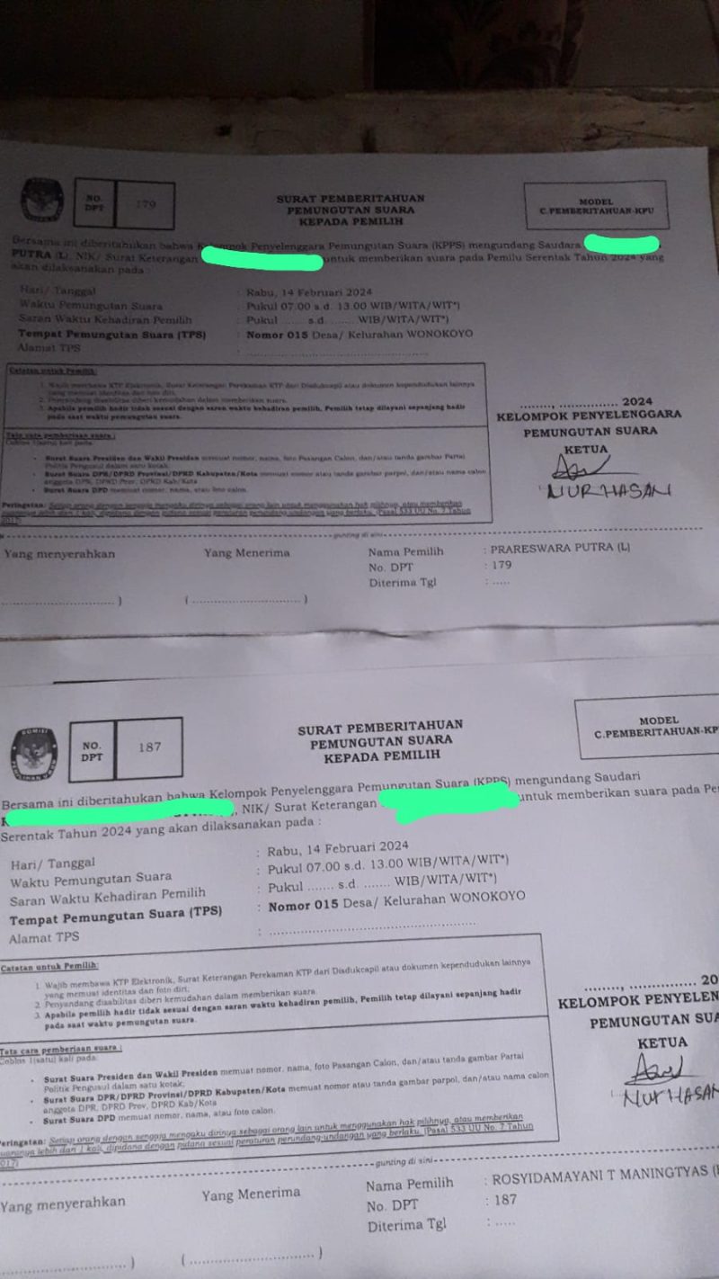 Seorang pemilih mendapatkan undangan fisik dari KPPS seperti dibawah ini.